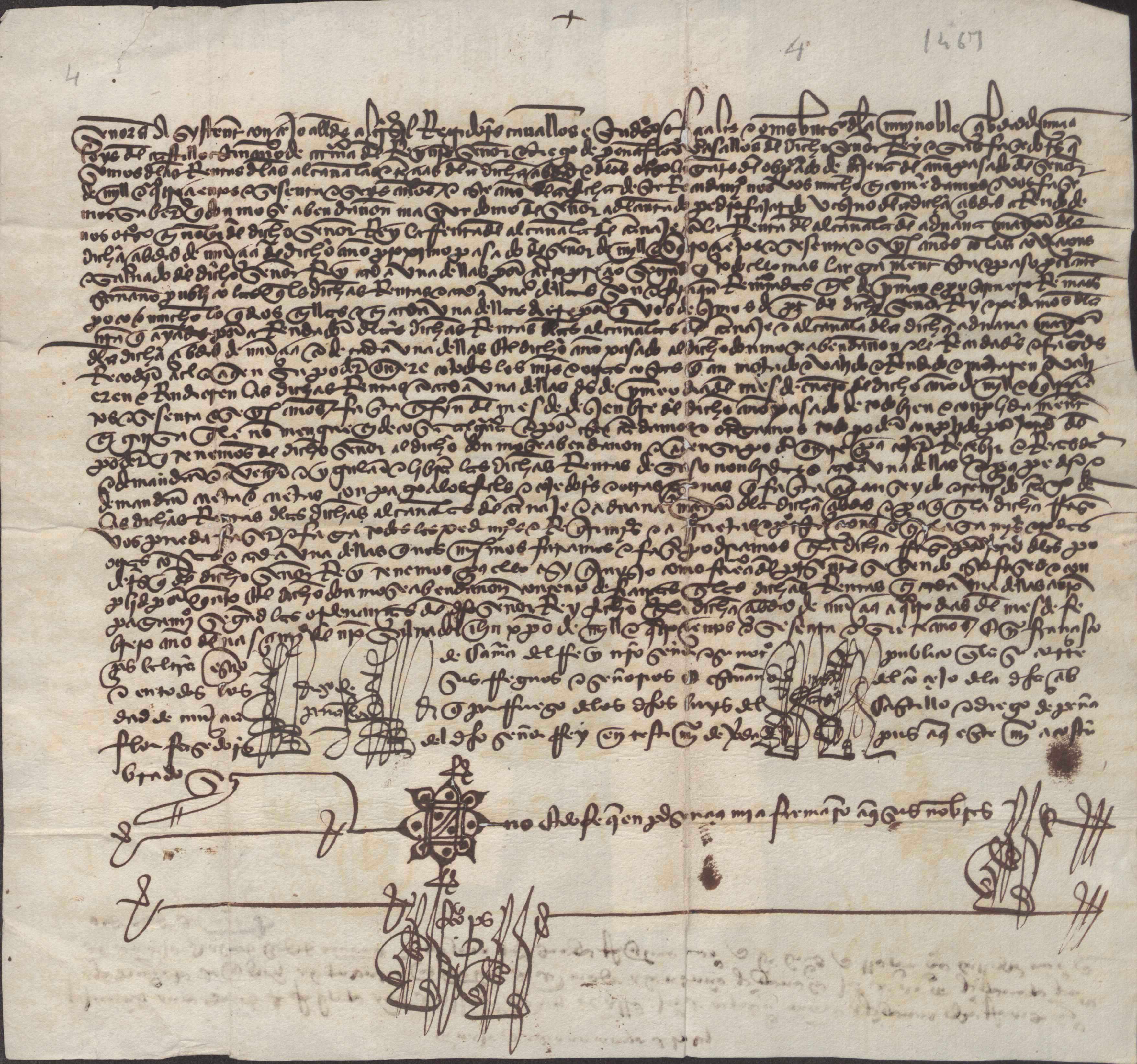 Carta de los hacedores de las rentas de las alcabalas y tercias de Murcia al concejo de Murcia sobre el arrendamiento de la alcabala del carnaje y de la aduana mayor de la ciudad del año 1466