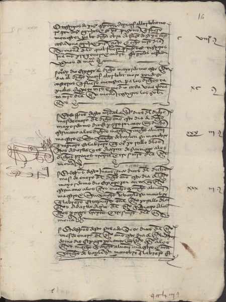 Testimonio de presentación ante el concejo de Murcia por parte de Macías Coque, obrero de los adarves, de las cuentas referentes a los 10.000 maravedís que el rey concede anualmente a la ciudad para la reparación de los muros y adarves.
