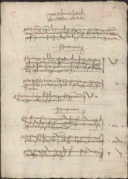 Testimonio de presentación ante el concejo de Murcia por parte de Juan de Espinosa de las cuentas referentes a los gastos de reparación de los muros y adarves de la ciudad.