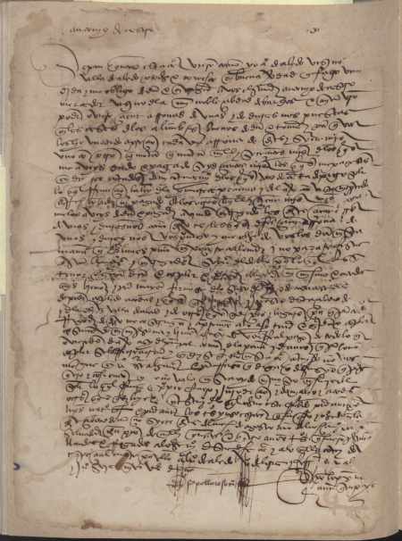 Carta de obligación de Alfonso de Aledo a Antonio de Castro de entregarle 100 arrobas de uvas y duraznos que le vendió.