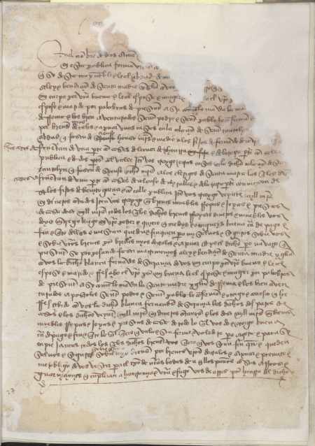 Blanca Fernández de Sarabia otorga por dote en su casamiento con Pedro Navarro unas casas en San Antolín, 20.000 maravedís en dinero y 12.000 maravedís en ropas y joyas. Navarro lo acepta y da por arras 20.000 maravedís.
