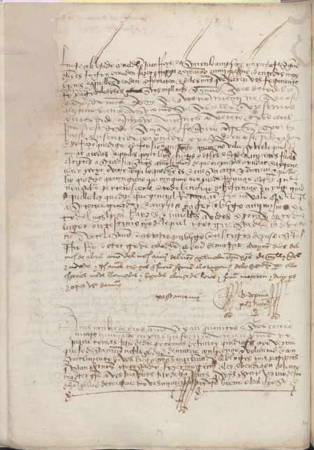 Juana Tomás, hija de Diego Tomás, ofrece por dote en su casamiento con Juan Ruiz, peraile, 6.000 maravedís que le corresponden de la herencia de sus padres. Éste lo acepta y ofrece por arras 2.000 maravedís.