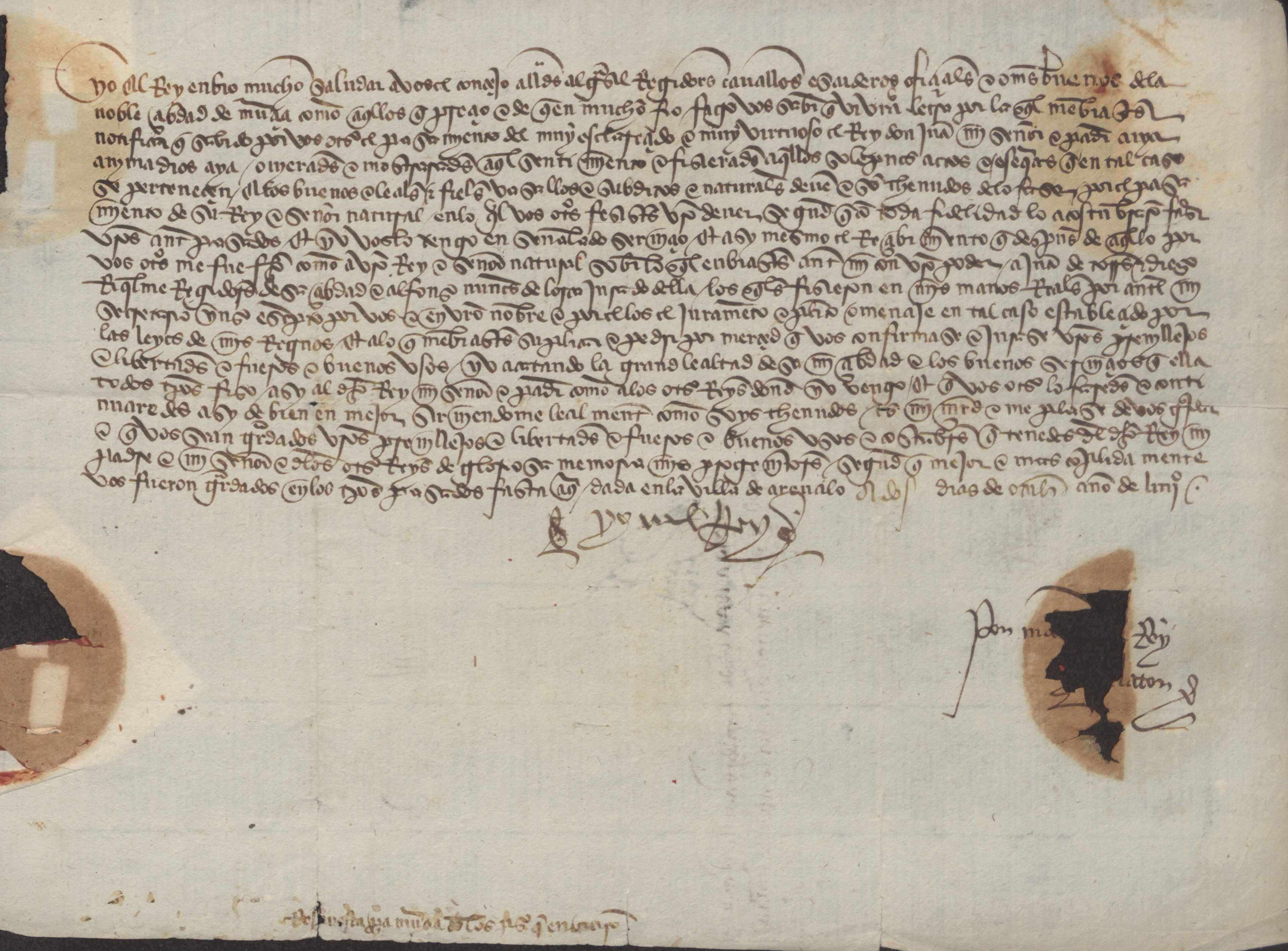 Carta misiva de Enrique IV al concejo de Murcia agradeciendo la exequias por su padre y su juramento como rey, y confirmando los privilegios de la ciudad.