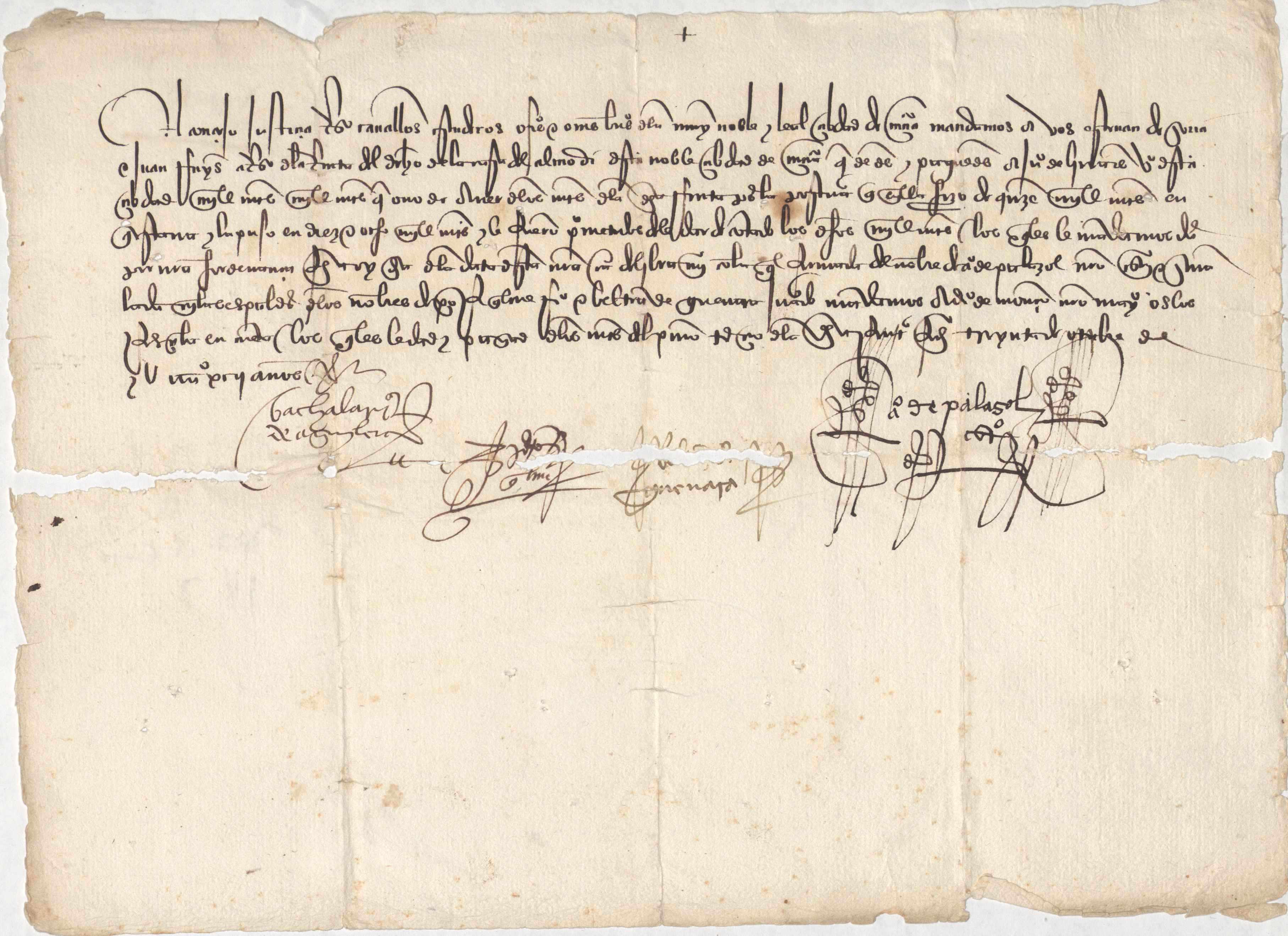 Al dorse figura el recibí, (1492-11-21). Los nombres pagador/es y receptor/es aparecen invertidos con respecto al mandamiento.
