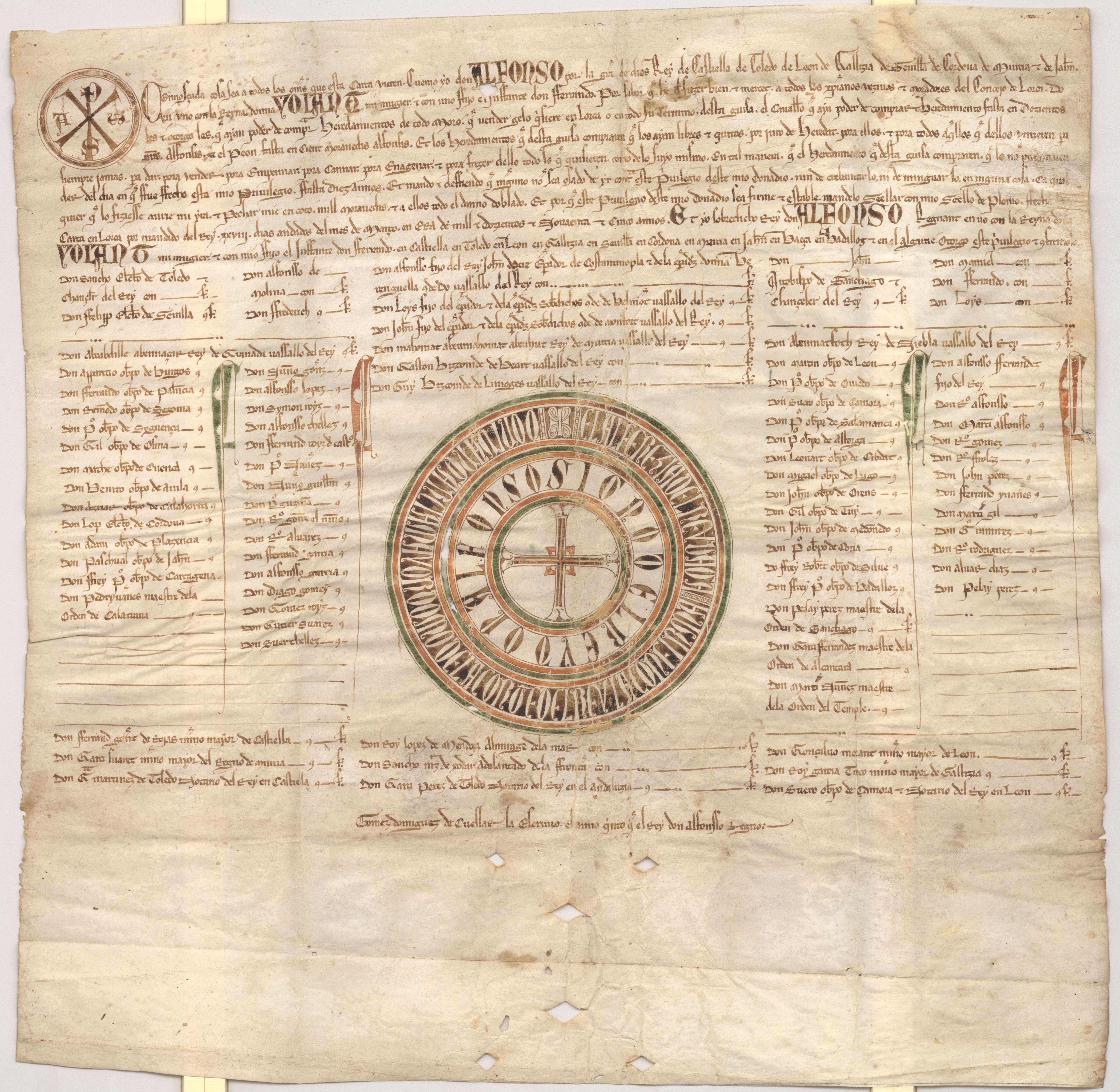 Privilegio rodado de Alfonso X a los pobladores cristianos de Lorca, concediéndoles permiso para comprar heredamientos de los moros que quisieran venderlos en el término de Lorca.