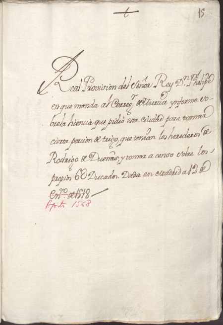 Provisión de Felipe II al corregidor de Murcia sobre la licencia solicitada por el concejo de Murcia para abastecerse de cierta porción de trigo
