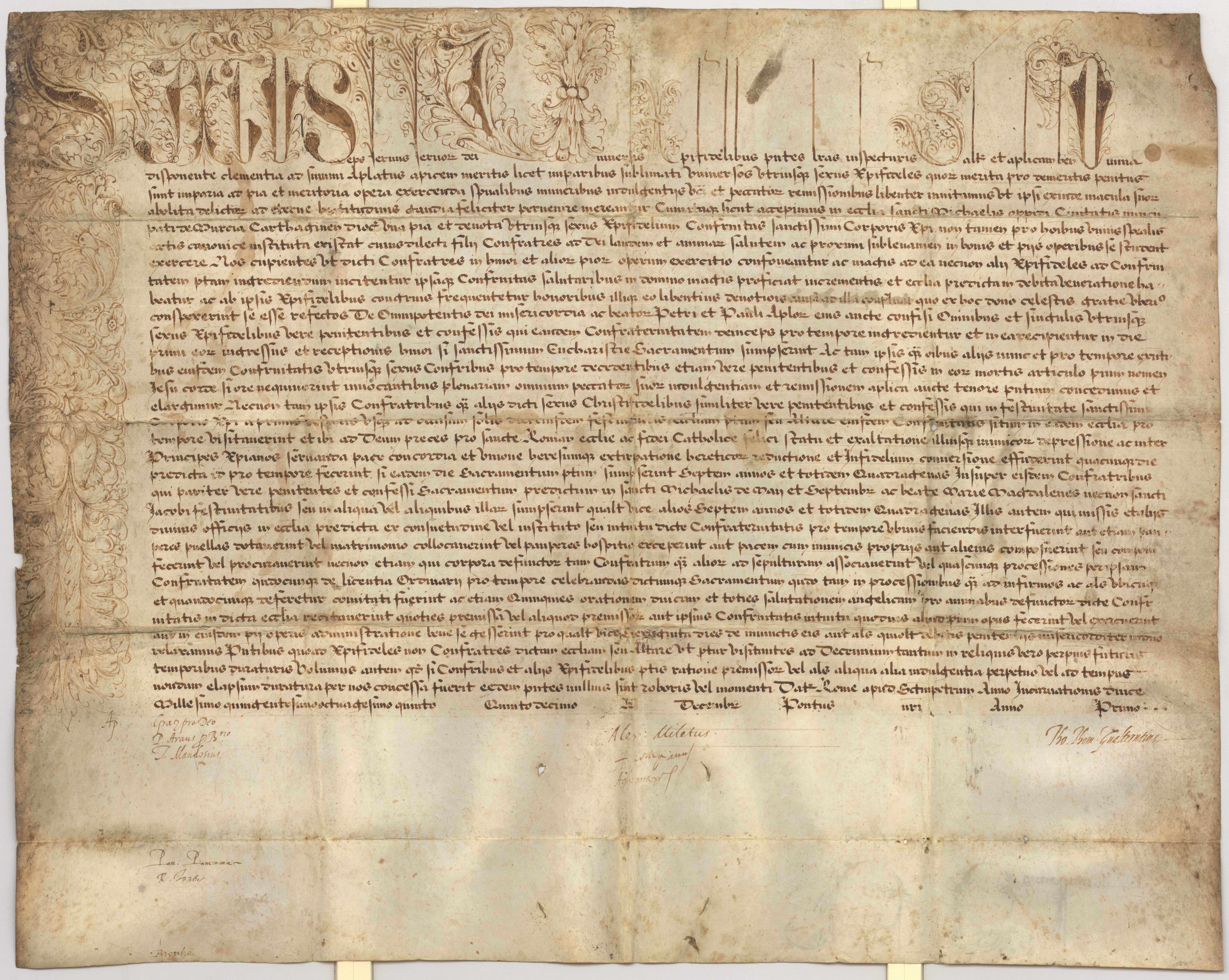 Bula de Sixto V para la fundación de la Cofradía del Santísimo Sacramento de la iglesia de San Miguel de Murcia.