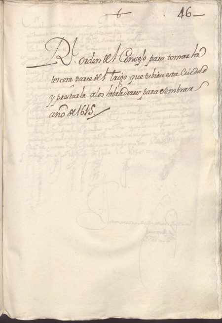 El Consejo Real ordena a Antonio de Quiñones Pimentel, corregidor de Murcia, Cartagena y Lorca, que, ante la previsión de una mala cosecha, realice un informe sobre la disponibilidad de trigo para abastecimiento y para sembrar y de los barbechos disponibles. Le ordenan que destine un tercio de las reservas del pósito para sembrar y si éste no fuera suficiente, que incaute de los particulares todo lo que tengan de sobra.