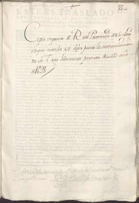 Traslado de una provisión de Felipe IV a todas las justicias del reino ordenando que no se pongan trabas ni embargen provisiones que vayan para abastecer Murcia (1628-01-27. Madrid).