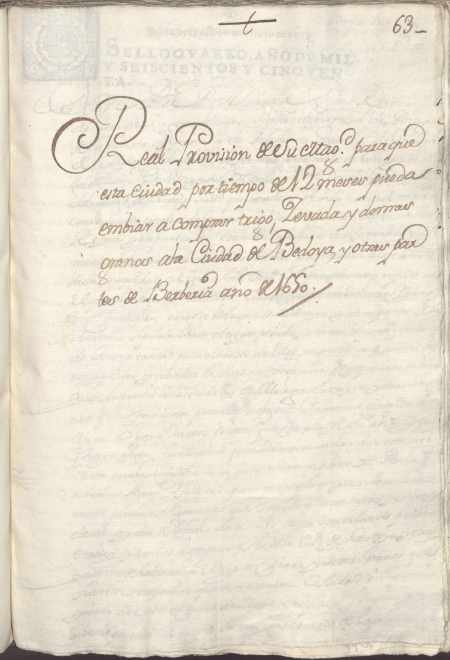 Cédula de Felipe IV al concejo de Murcia concediendo licencia para que puedan comprar cereales en Botoya y otras partes de la Berbería.