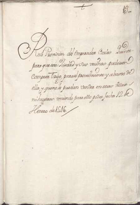 Carlos V y Juana I otorgan licencia a la ciudad de Murcia para que durante 2 años pueda comprar todo el trigo necesario para su provisión. Prohibe que se especule con los precios de venta.