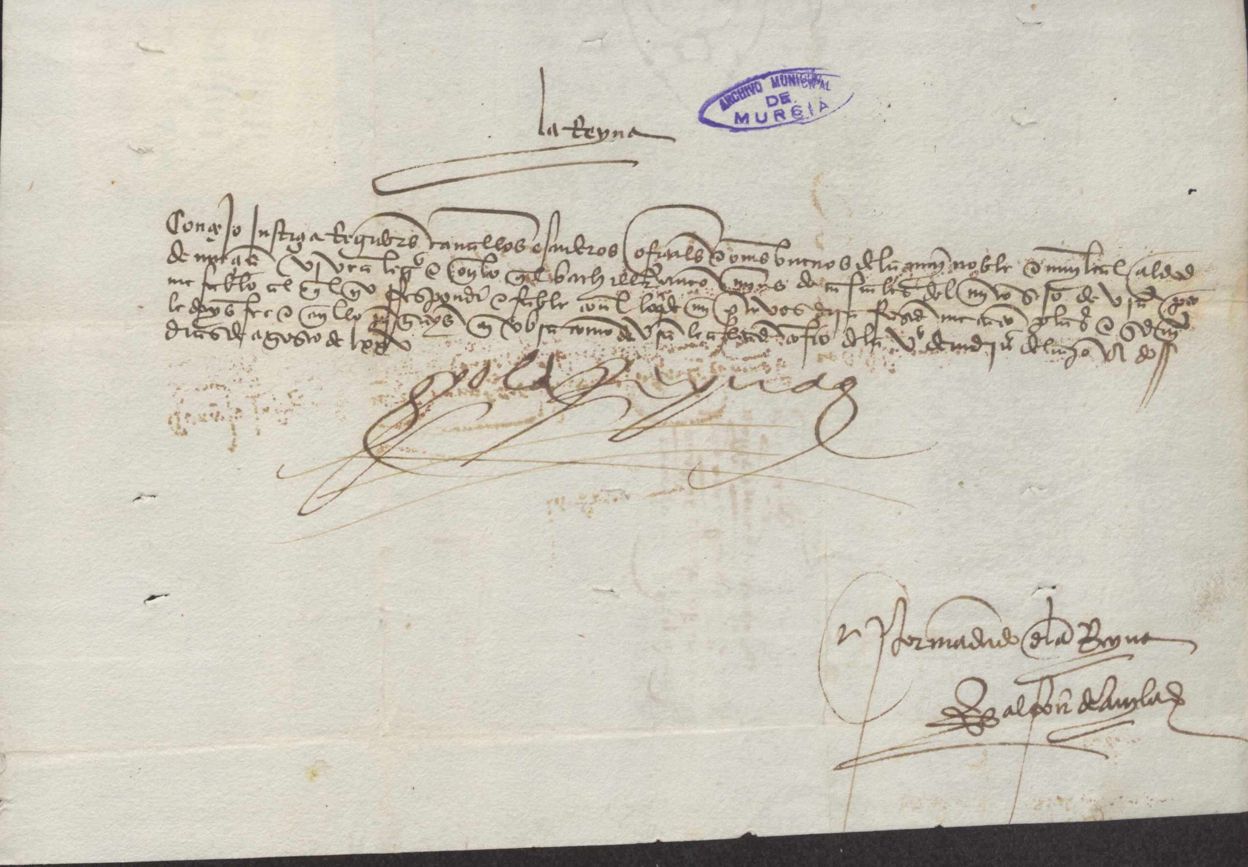 Carta misiva de la reina Isabel al concejo de Murcia confirmando como regidor a Antón Martínez de Cascales.