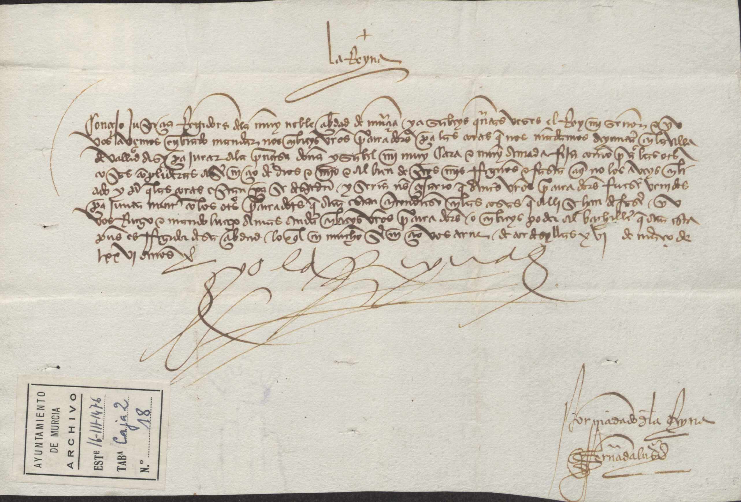Isabel la Católica pide a la ciudad de Murcia que envíe cuanto antes a sus procuradores para cortes a Valladolid, con el fin de jurar como heredera a la infanta Isabel, debido al retraso que existe en dicho envío por parte de la ciudad.