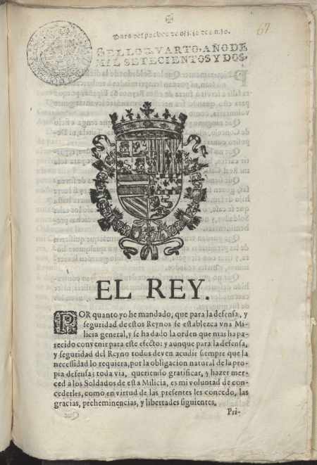 El rey concede ciertos privilegios a los soldados que integran las milicias para la defensa del territorio, tales como no tener que embarcarse fuera de España, no ser apresados por deudas anteriores, poder llevar armas, o poder jubilarse después de veinte años de servicio.