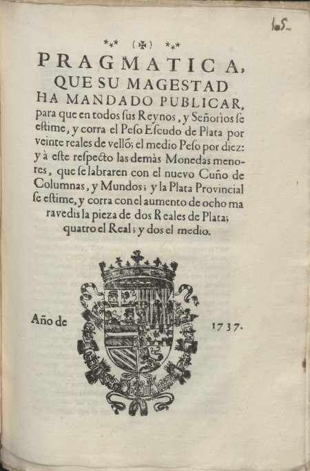 Copia de Real Pragmática de Felipe V, estipulando el valor que han de tener las monedas de sus reinos.