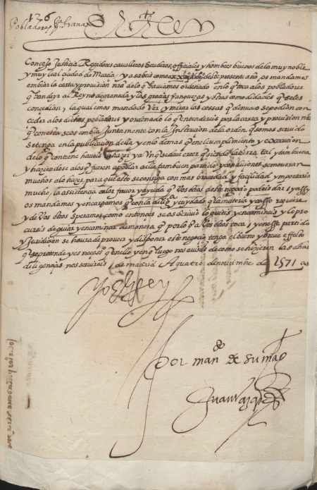 Carta misiva de Felipe II al concejo de Murcia, comunicando enviará información sobre las franquezas y privilegios otorgadas a los pobladores que vayan al reino de Granada.