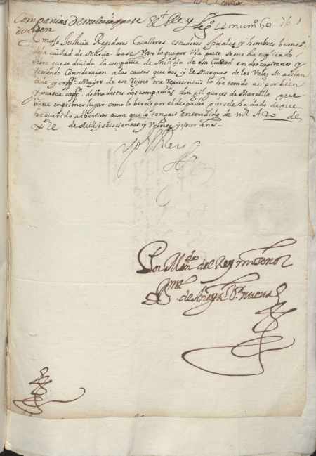 Carta misiva de Felipe IV al concejo de Murcia, comunicando la división en dos de la milicia de la ciudad.