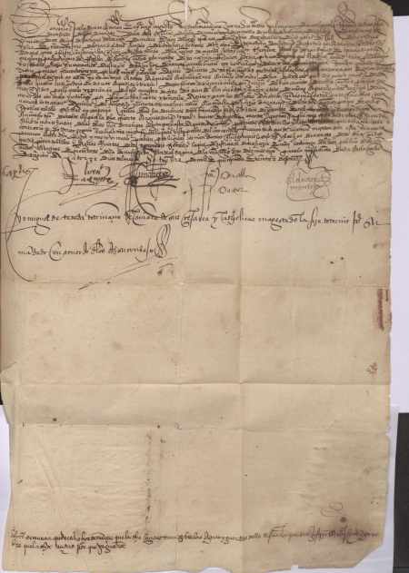 Provisión de Carlos V y Juana I al corregidor de Murcia, ordenando estudiar las ordenanzas sobre las aguas y huertas de la ciudad.