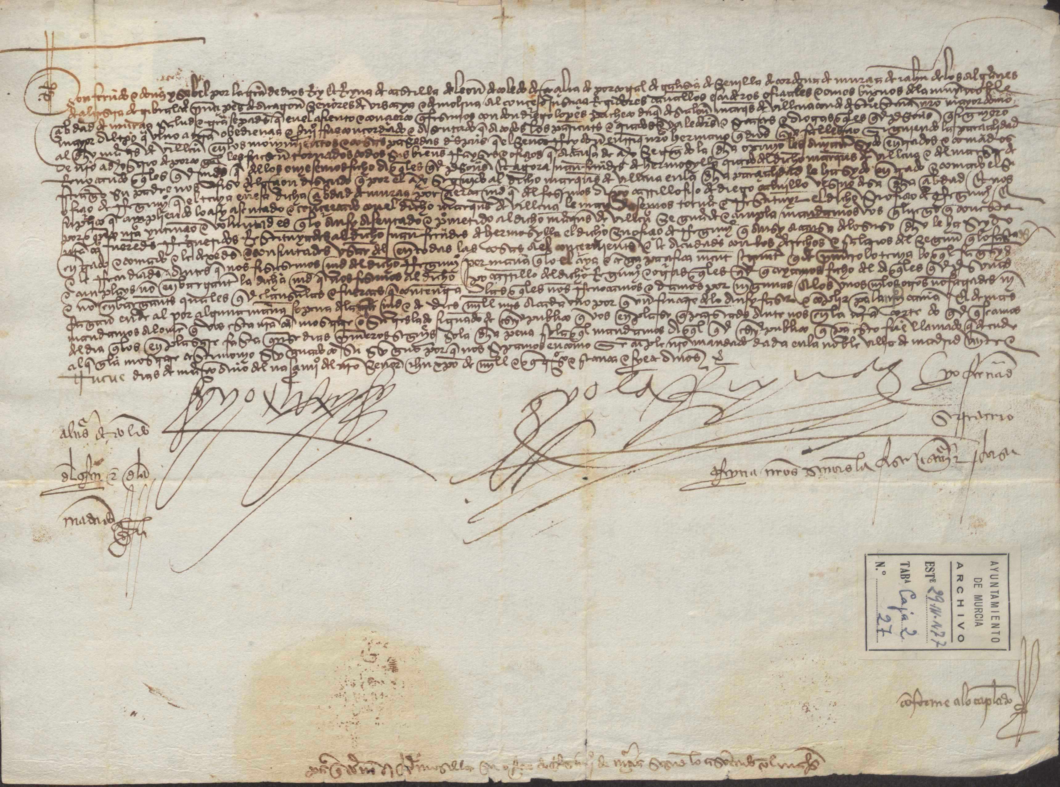 Los Reyes Católicos ordenan restituir en su cargo de regidor de Murcia a Juan Fernández de Hermosilla, que había sido destituido por tomar partido con su señor, el el Marqués de Villena, por Juana la Beltraneja en la pasada guerra.
