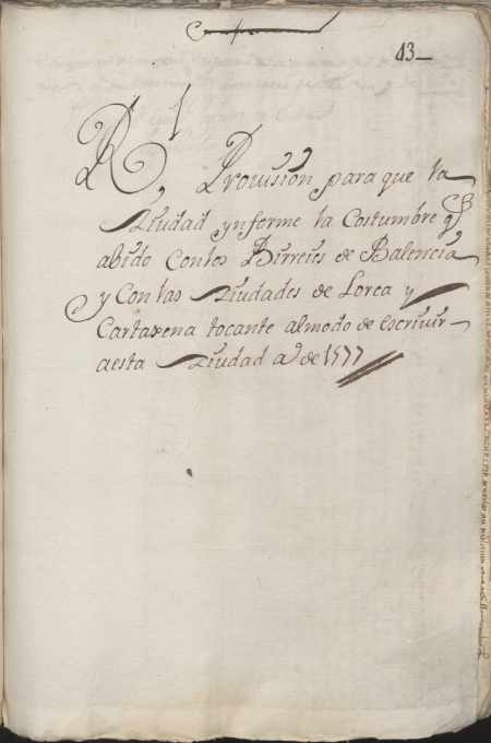 Provisión de Felipe II al concejo de Murcia, sobre la falta de entendimiento entre las ciudades del Reino de Murcia con las del Reino de Valencia por razón de la manera de enviar la correspondencia.