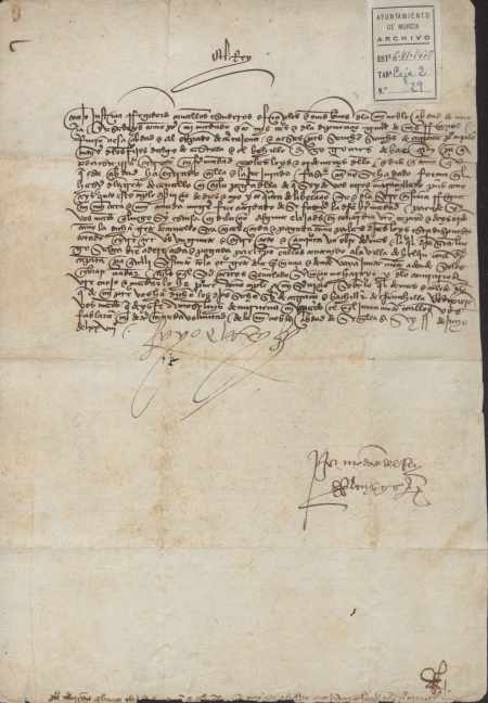 Carta misiva de Fernando el Católico a la ciudad de Murcia pidiendo se nombre un capitán de la Hermandad de la gente que ha de marchar a Hellín.