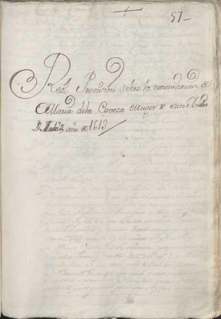 Provisión de Felipe IV a Gabriel de Trejo, del Consejo de la Inquisición, ordenándole supervisar la canonización de María de la Cabeza, mujer de San Isidro de Madrid.