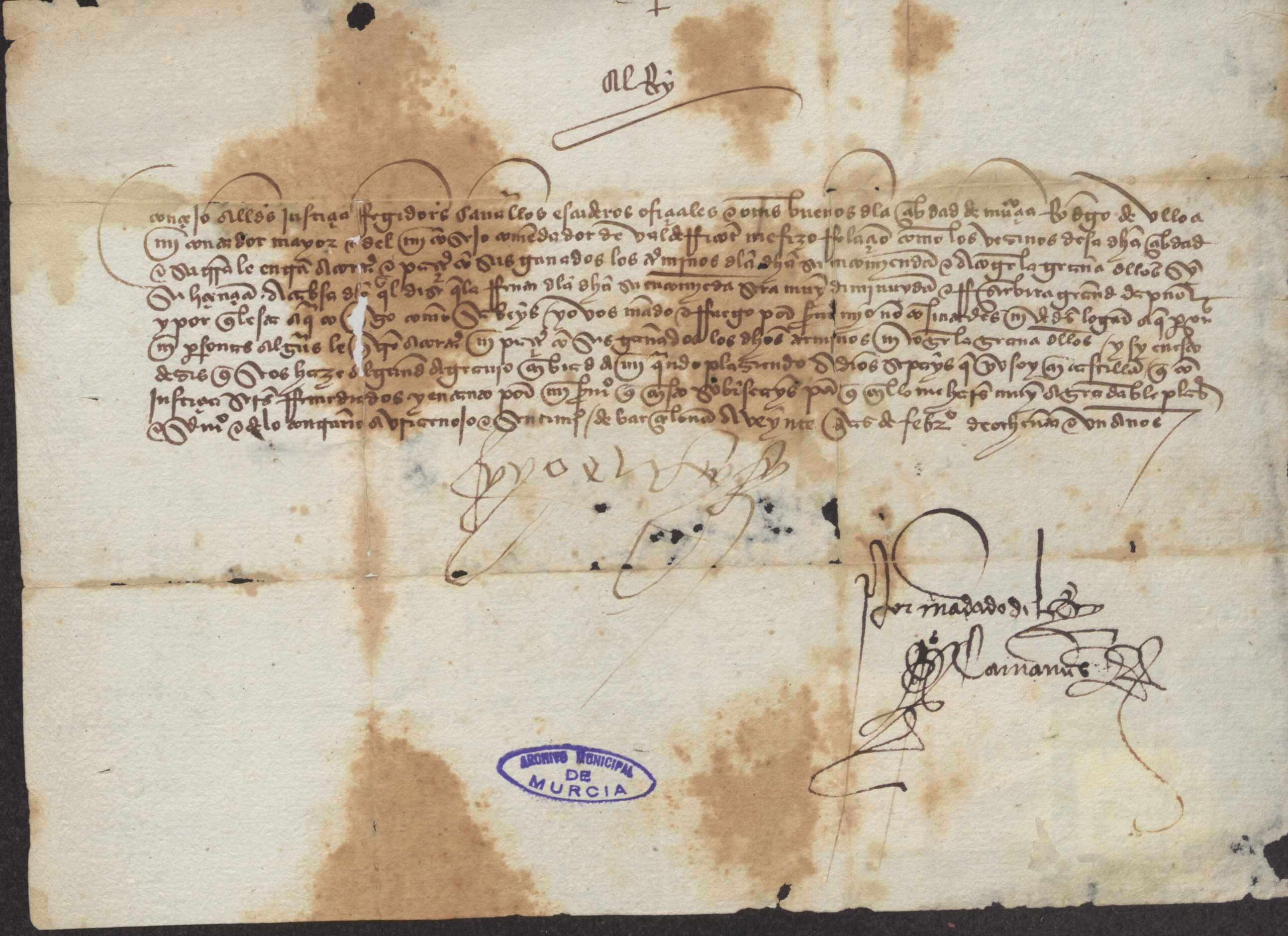 Carta misiva de Fernando el Católico a la ciudad de Murcia prohibiendo a sus vecinos que lleven sus ganados a pastar al valle de Ricote.