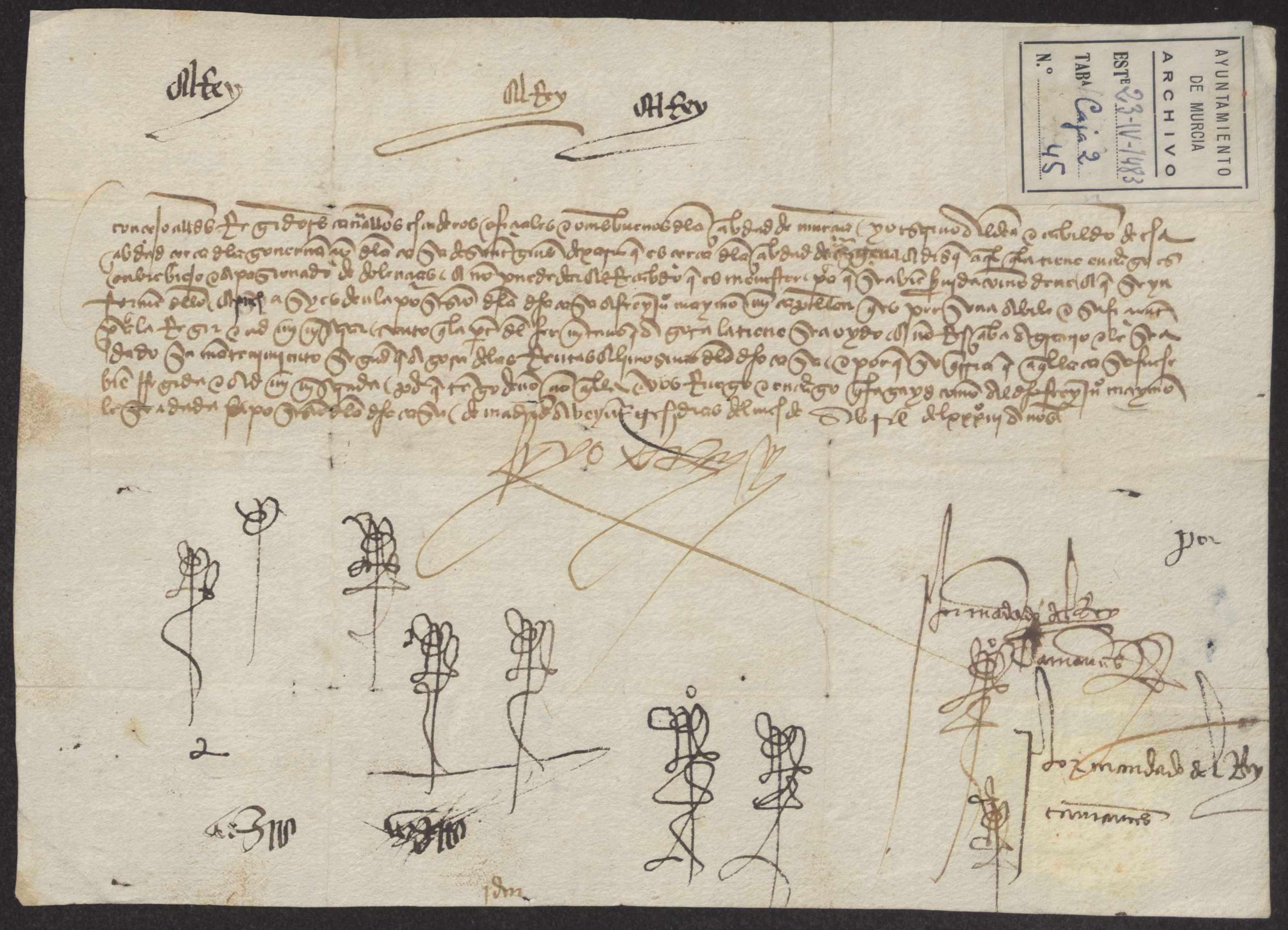 Carta misiva de Fernando el Católico al concejo de Murcia proponiendo a fray Juan Maymón, su capellán, para ser nombrado encargado del mantenimiento del monasterio de San Ginés de la Jara.