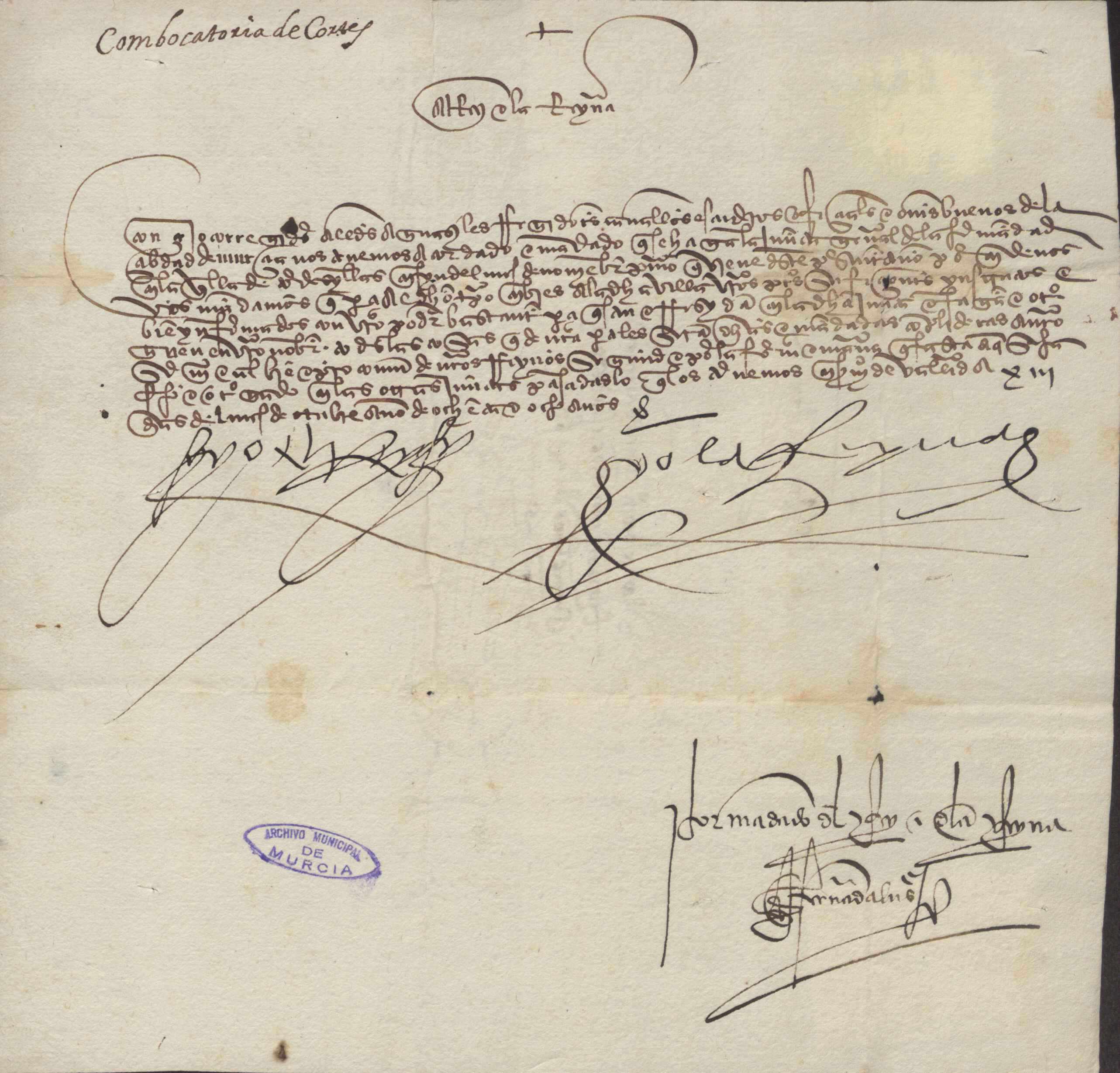 Los Reyes Católicos informan a la ciudad de Murcia de la convocatoria de Junta General de la Hermandad en Tordesillas en el mes de Noviembre, y por tanto ordenan el envío de procuradores.
