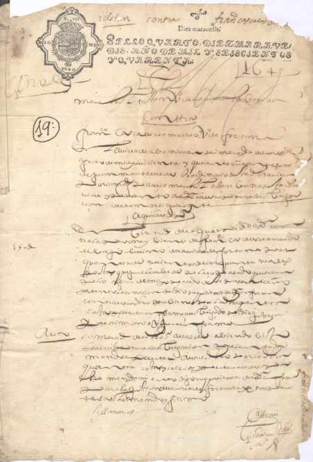 Expediente del pleito de Melchor Tristán, vecino de Abanilla, y Francisco Cascales Amarillo, "el viejo", vecino de Fortuna, en razón de ejecución en los bienes del segundo por la deuda de 350 reales de vellón que contrajo por la compra de 14 fanegas de trigo.