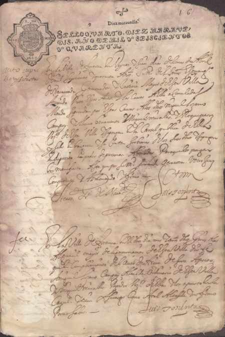 -Denuncia de oficio de Esteban García de Navacerrada, Gobernador de la villa de Fortuna, contra Miguel Lozano Campoy y Alonso Benavente, alcaldes ordinarios de la misma, por negarse a entregar al alguacil de la villa al regidor Miguel Miralles. (Fortuna, 1640-04-28) Fols. 1r/v)