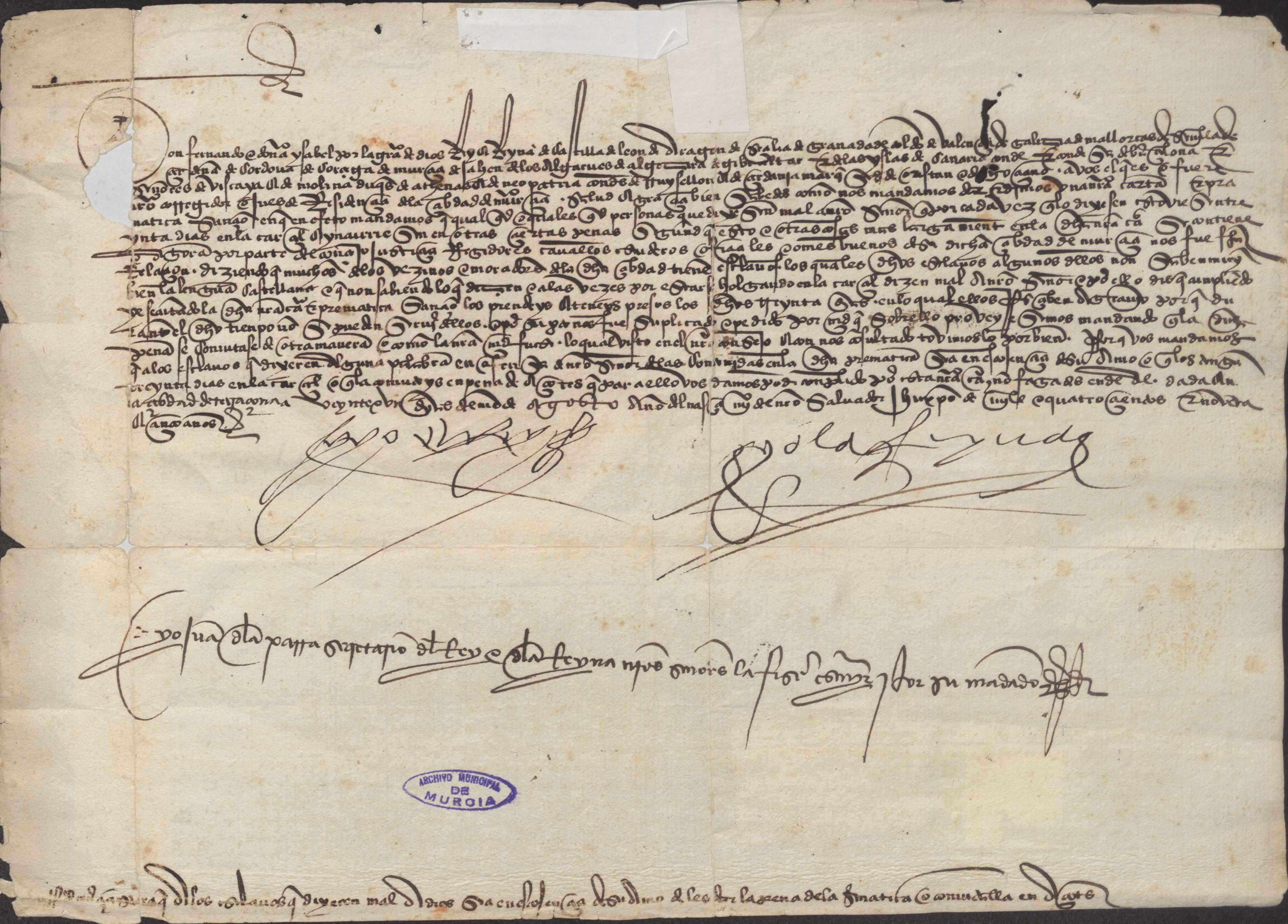 Pub. GOMARIZ MARÍN, ANTONIO. Documentos de los Reyes Católicos 1492-1504. Murcia: Academia Alfonso X el Sabio, 2000. pp. 323-324; Pub. TORRES FONTES, JUAN. Estampas de la vida murciana en la época de los Reyes Católicos. Murcia: Academia Alfonso X el Sabio 1984, pp. 44-45