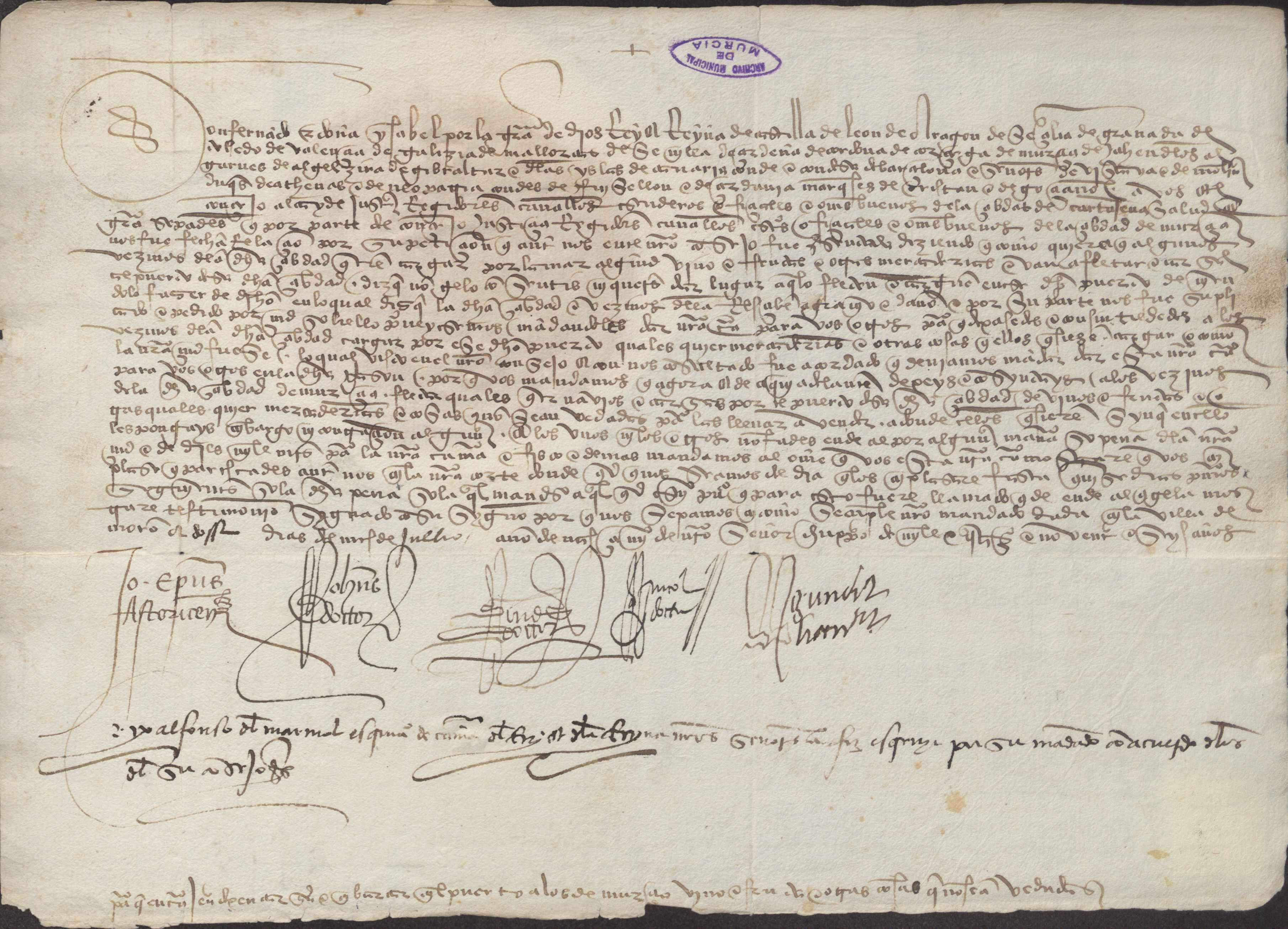 Pub. GOMARIZ MARÍN, ANTONIO. Documentos de los Reyes Católicos 1492-1504. Murcia: Academia Alfonso X el Sabio, 2000. pp. 365-366; Pub. TORRES FONTES, JUAN. Estampas de la vida murciana en la época de los Reyes Católicos. Murcia: Academia Alfonso X el Sabio 1984, pp. 35-37