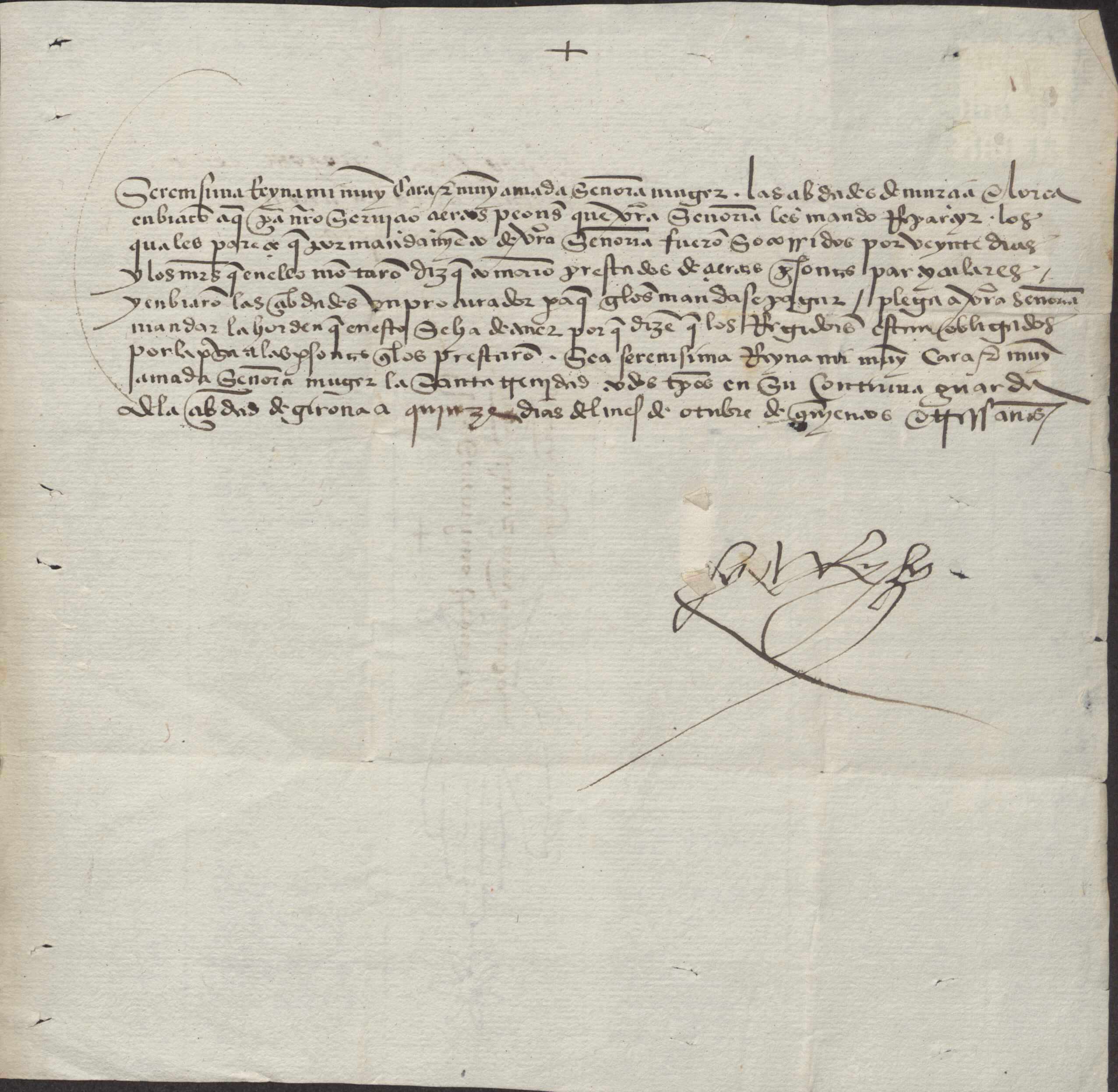 Carta misiva de Fernando el Católico a la reina Isabel pidiendo dé la orden de devolver el dinero que dieron algunos vecinos de Murcia y Lorca para pagar el envío de los peones a la guerra.