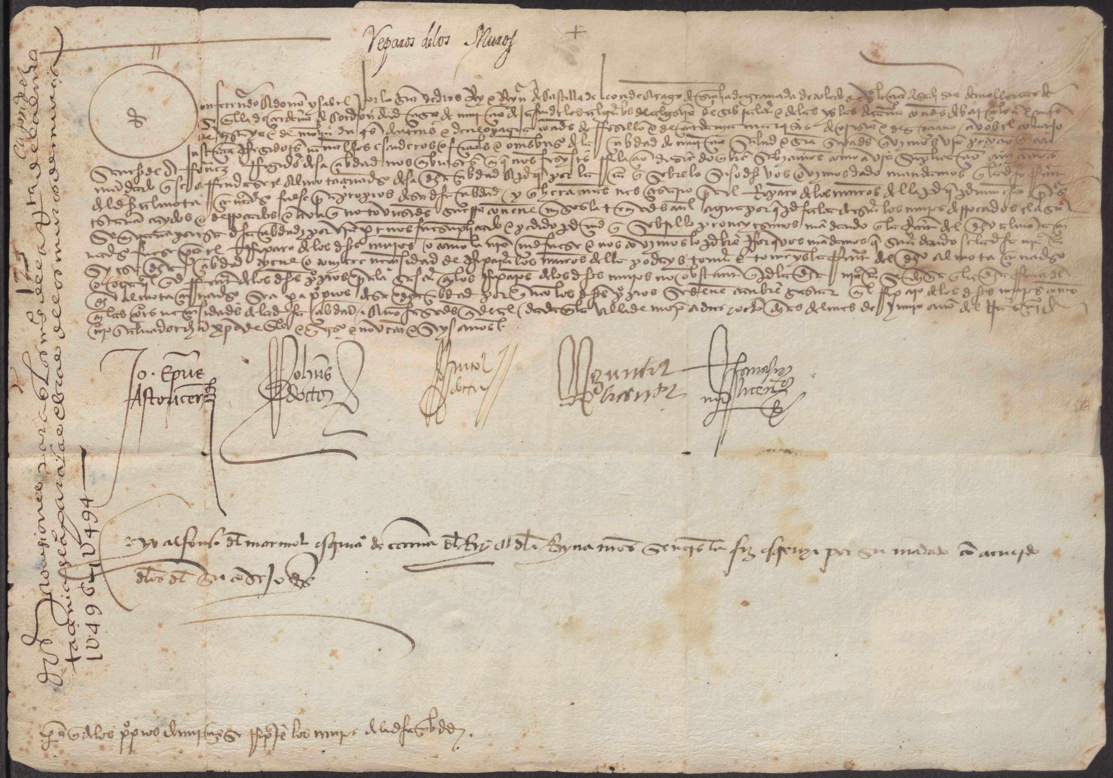 Los Reyes Católicos autorizan al concejo de Murcia arrendar el oficio de almotacén, cuyo dinero se destinará a los propios de la ciudad para poder arreglar los muros y evitar daños ante las crecidas del río Segura.