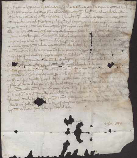 Carta abierta de Fernando IV al adelantado de Murcia, Diego García, ordenándole que haga respetar el perdón real a todos los vecinos de Murcia, incluyendo en él a los hermanos Fortuyn, que habían sido condenados por matar a Ramón Eymerich.