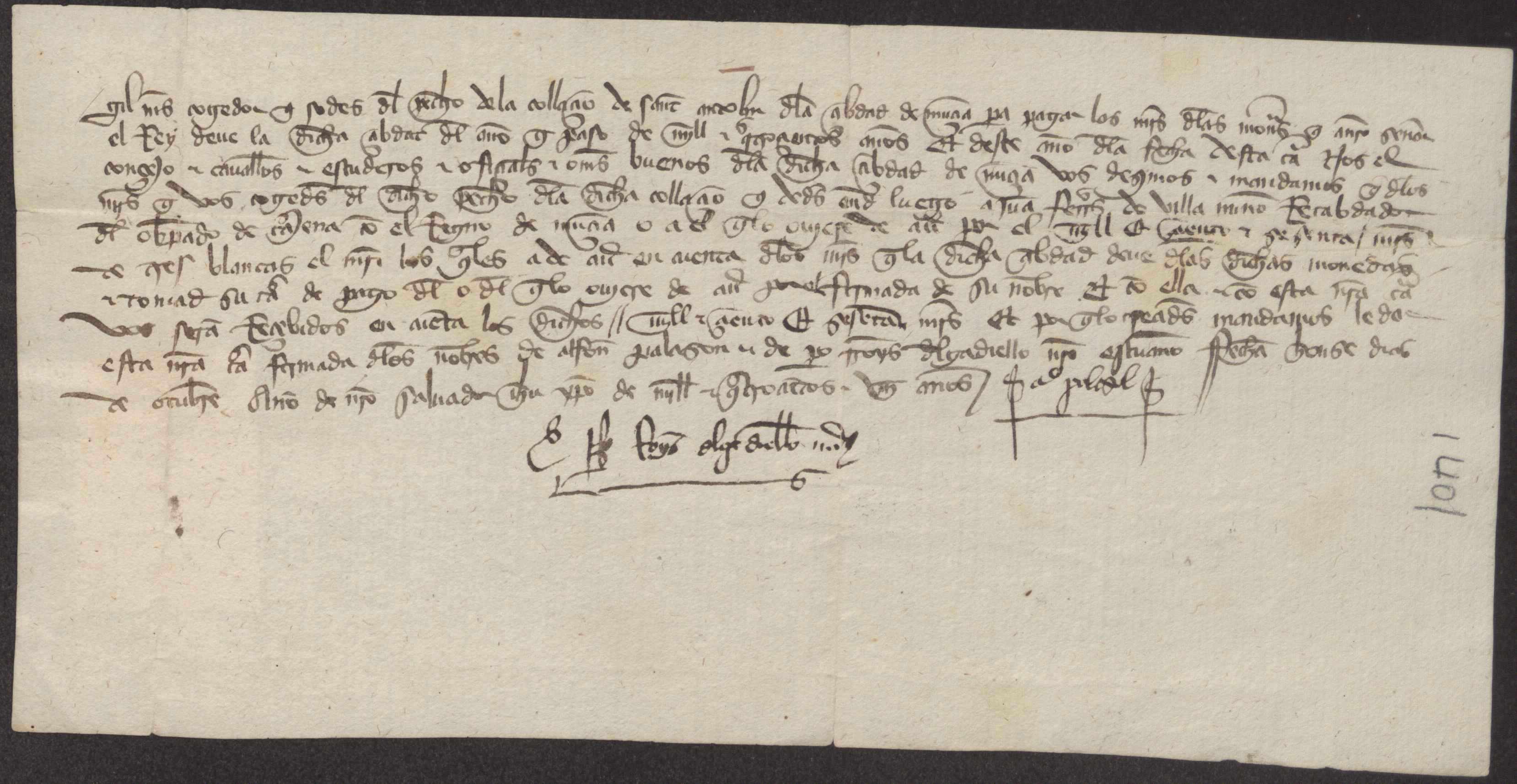 El concejo de Murcia ordena a Gil Martínez, recaudador del pecho de la colación de San Antolín, que pague los 1.160 maravedís de la recaudación del año 1400 a Juan Fernández de Villanuño, recaudador del obispado de Cartagena y Reino de Murcia. Escrito al dorso, el recibo por el que Juan Fernández de Villanuño certifica haber recibido dicho dinero de los recaudadores Gil Martínez y Alonso Martínez.
