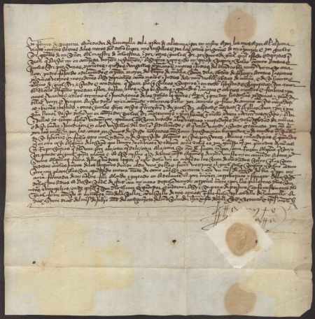Carta de Benito de Segarra, comendador de Abanilla, al adelantado de Murcia permitiendo a los vecinos de Murcia circular libremente por sus tierras.