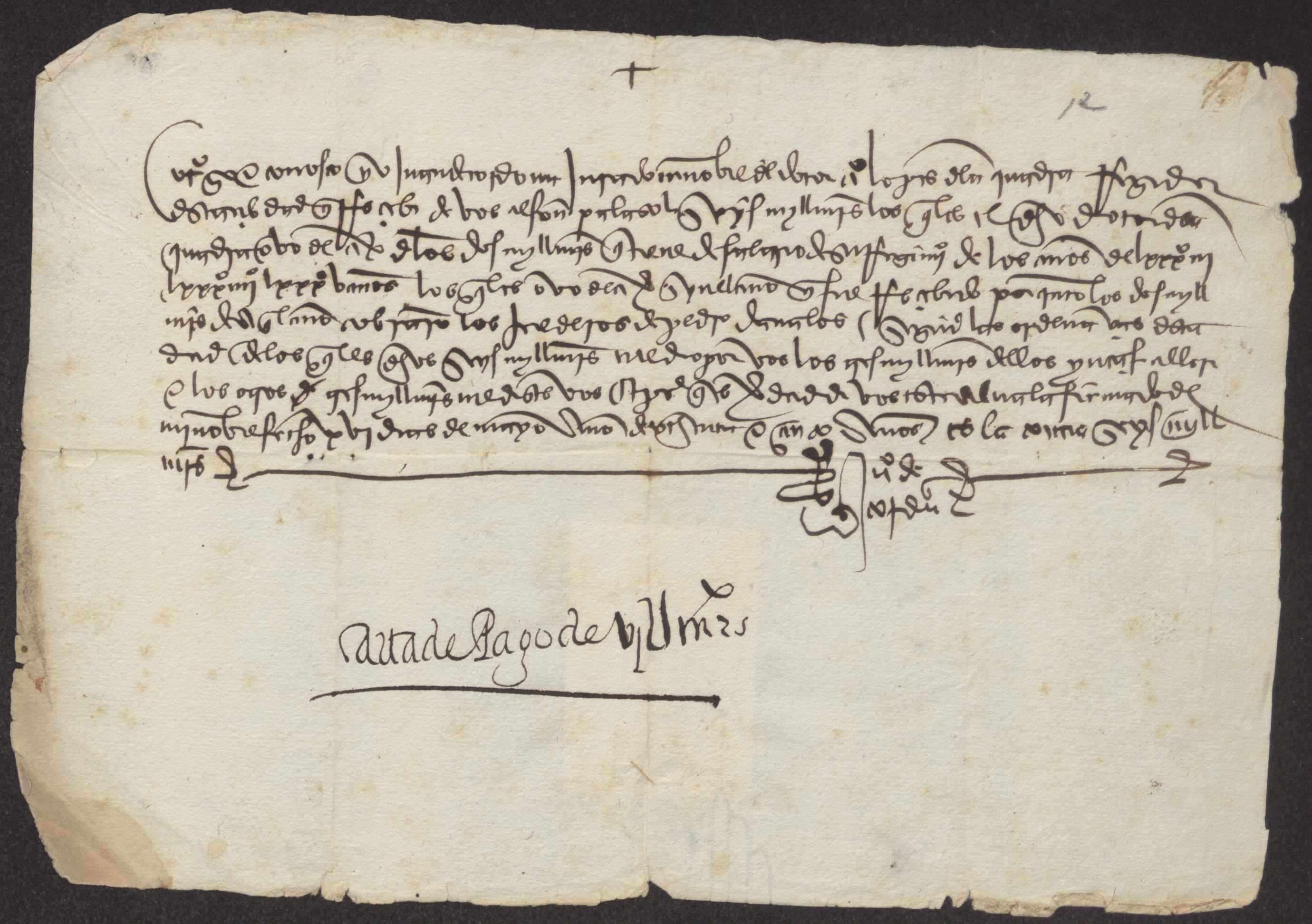 Recibo de Juan de Córdoba, manifestando haber cobrado 6.000 maravedís de Alfonso de Palazol referentes al salario del regidor Alfonso López de la Cuadra.