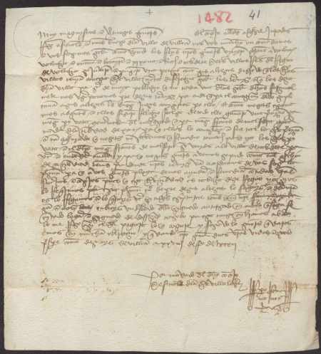 El concejo de Villena solicitia ayuda al concejo de Murcia para que sirva de intermediario en un asunto referente a una provisión dada por los Reyes Católicos sobre términos que Bocairén, Onteniente, Biar, Caudete, Jijona y otras villas del Reino de Valencia, lo que perjudica los intereses de Villena.