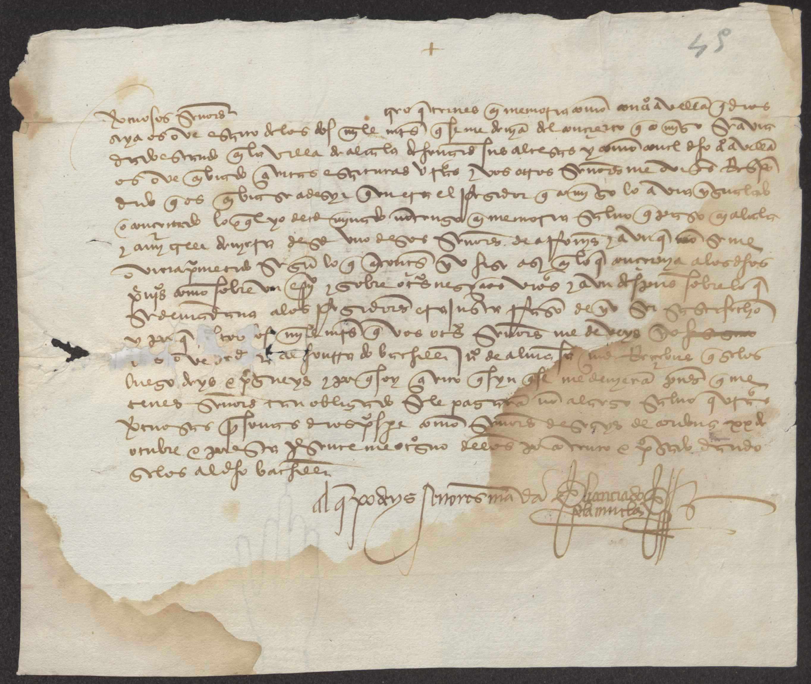 El licenciado De la Muela se dirige al concejo de Murcia para solicitar se le paguen los 2.000 maravedís que se le deben de las gestiones del concejo que realizó en Alcalá de Henares, comunicando que nombra al bachiller Juan de Almansa para que reciba dicha cantidad en su nombre. Fechada el 19 de febrero de 149?.