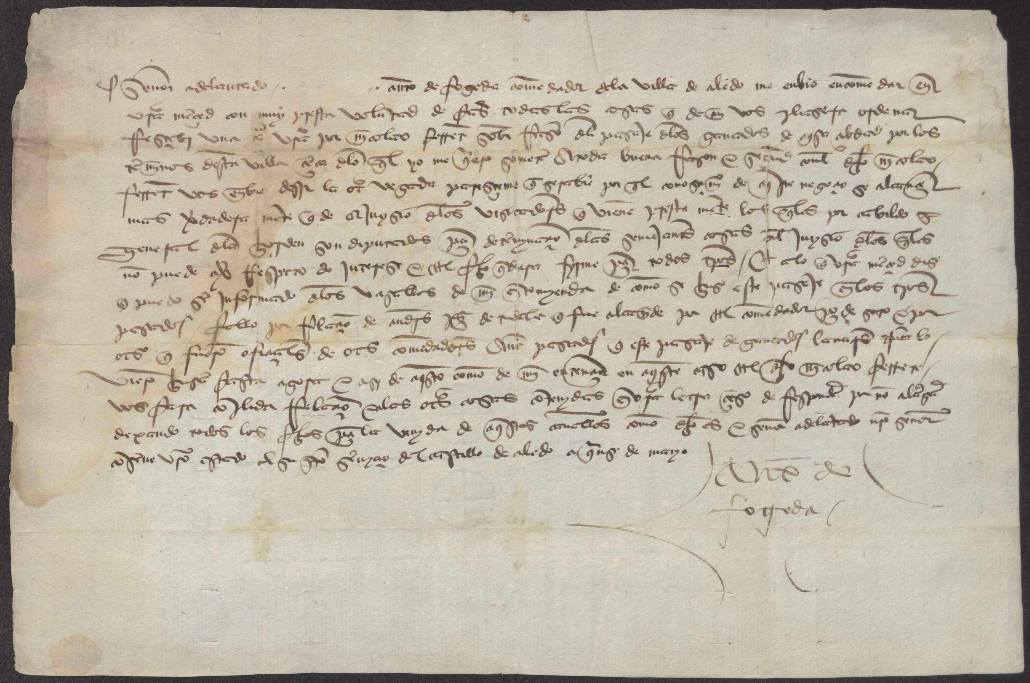 Carta de Antón de Fogeda, comendador de Aledo, al Adelantado de Murcia, sobre el paso de los ganados por Aledo.