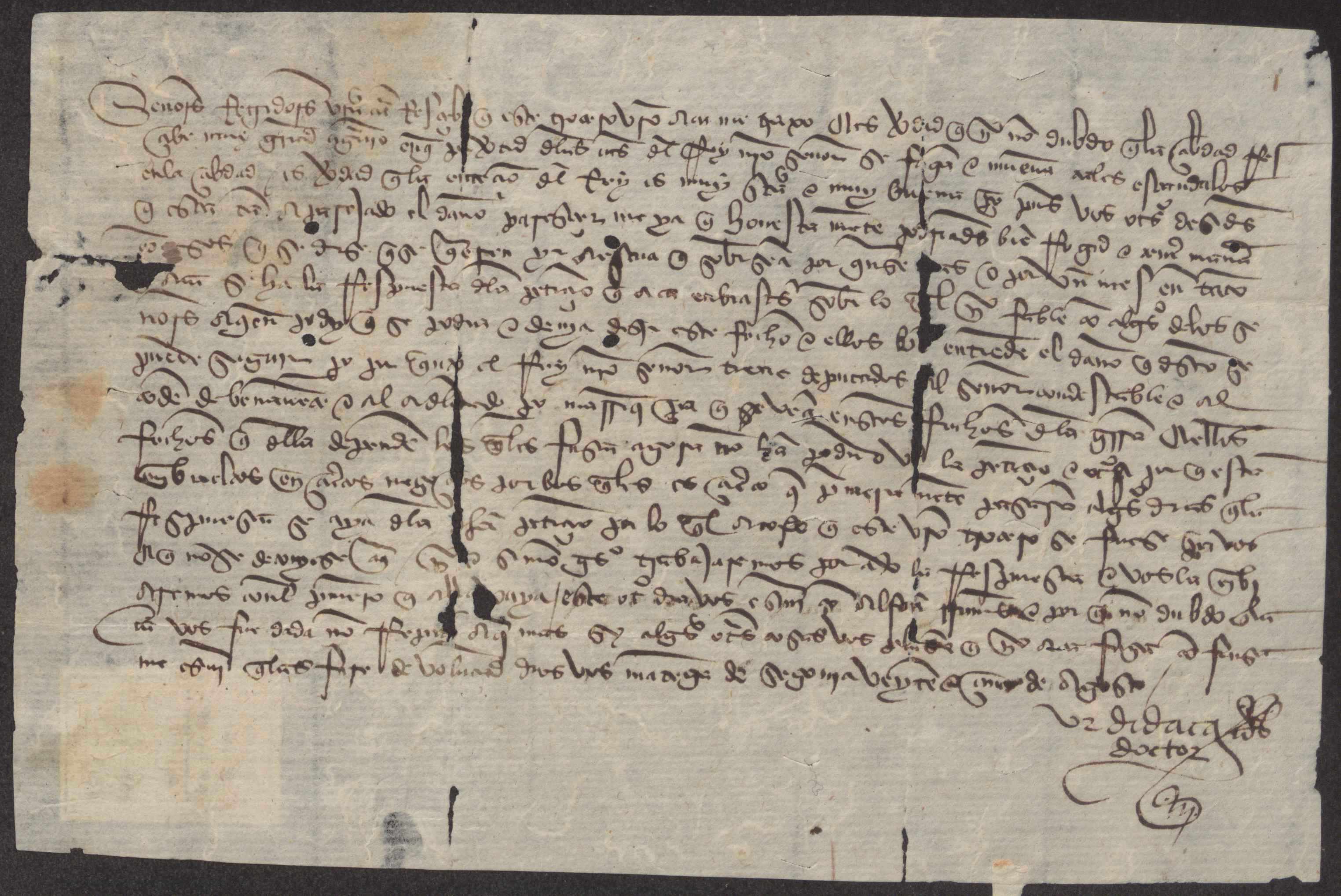 El doctor Diego, procurador de la ciudad de Murcia, comunica a concejo que las peticiones que éste solicitó ante el rey y que él gestiona en la corte deberán esperar un tiempo para ser tratadas por el rey, debido a la guerra que existe con el Condestable de Castilla, el Conde de Benavente y el Adelantado Pedro Manrique. Fechada el 25 de agosto.
