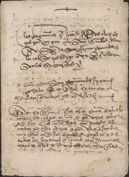 Declaración de Alfonso de Lorca, Fernando Diáñez, Juan Beltrán de Guevara, Diego de Peñaranda y Alfonso de Auñón, testigos presentados por Gonzalo Saorín, procurador de Miguel Sánchez, en el pleito que éste tiene con Pedro de Cervellera sobre ciertas tierras de secano en el Campo de Cartagena.
