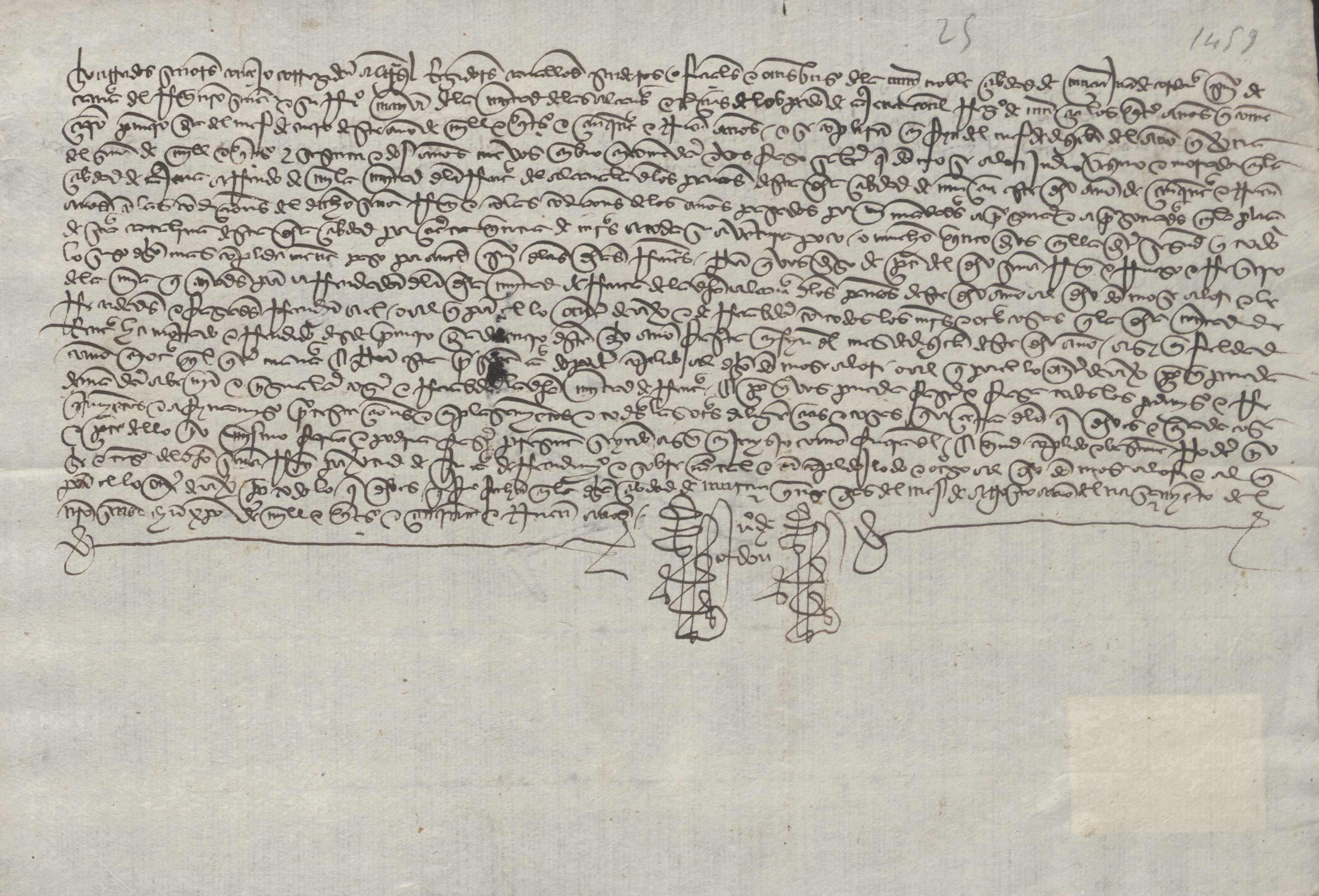 Juan de Córdoba, escribano de cámara del rey y recaudador mayor de las alcabalas y tercias del reino de Murcia, comunica al concejo de Murcia que D. Mose Alori, vecino de Murcia ha quedado como recaudador de la mitad de la renta de la alcabala de los paños de la ciudad durante todo el año de 1459.