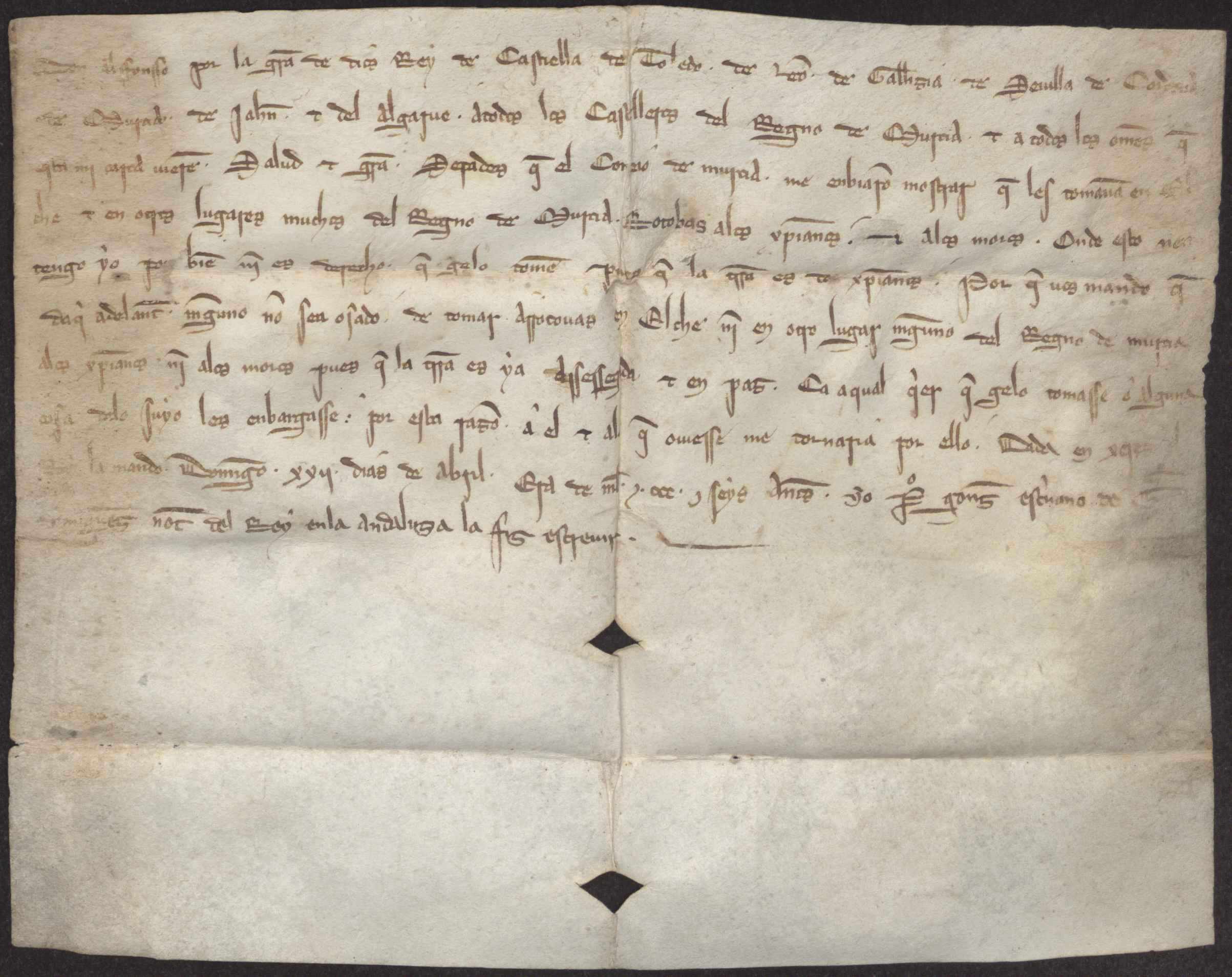 Carta abierta de Alfonso X a los castelleros del reino de Murcia, prohibiendo el cobro del impuesto de rotoba.