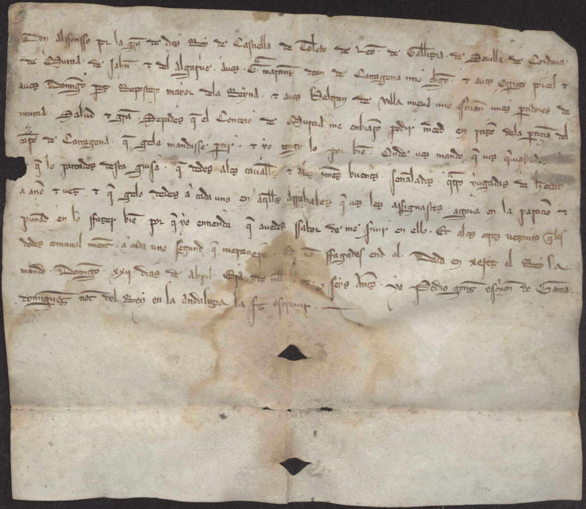 Carta abierta de Alfonso X ordenando a los partidores de Murcia que hagan la partición del campo de Cartagena.