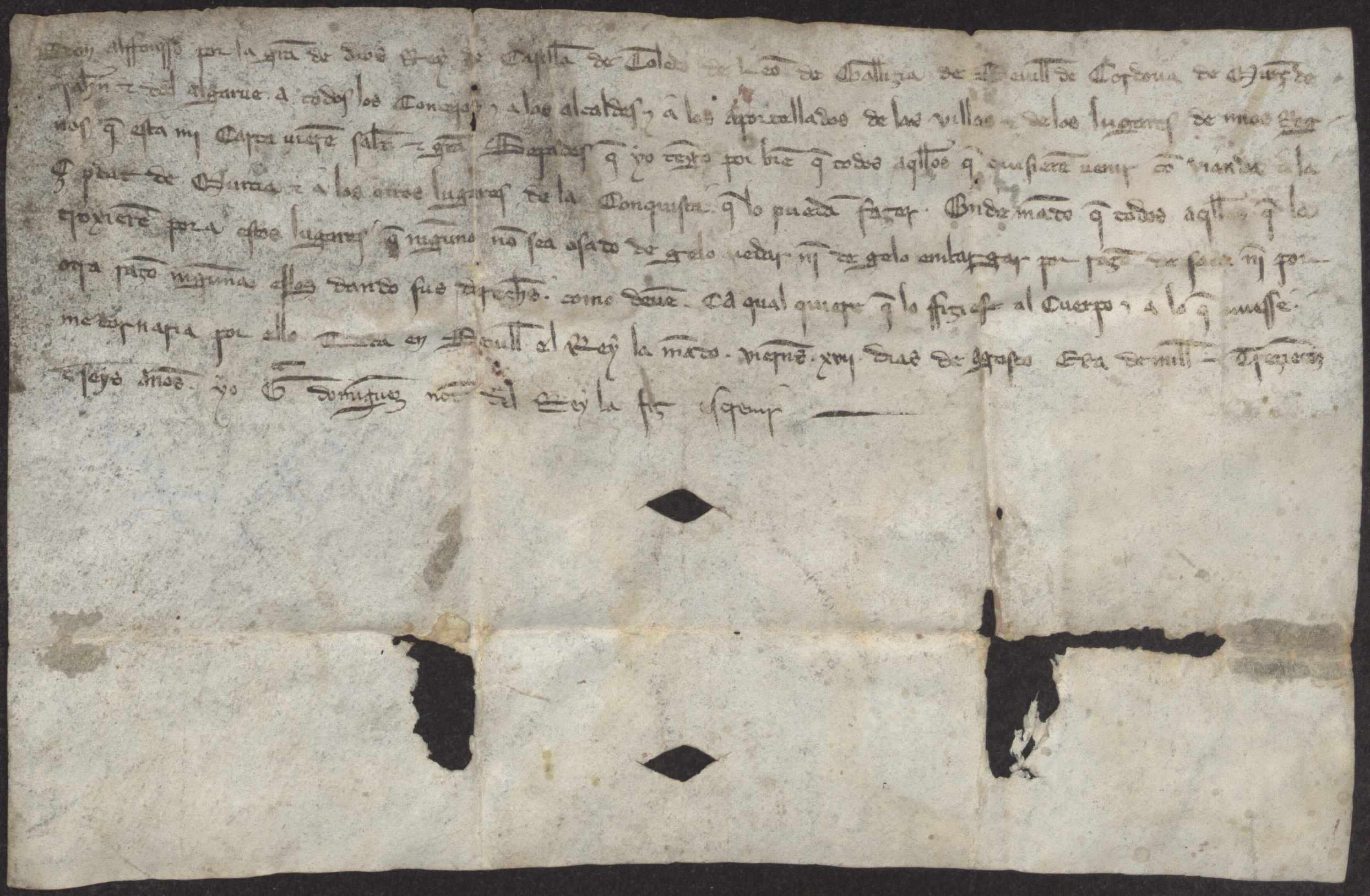 Carta abierta de Alfonso X autorizando el paso de viandas a Murcia.