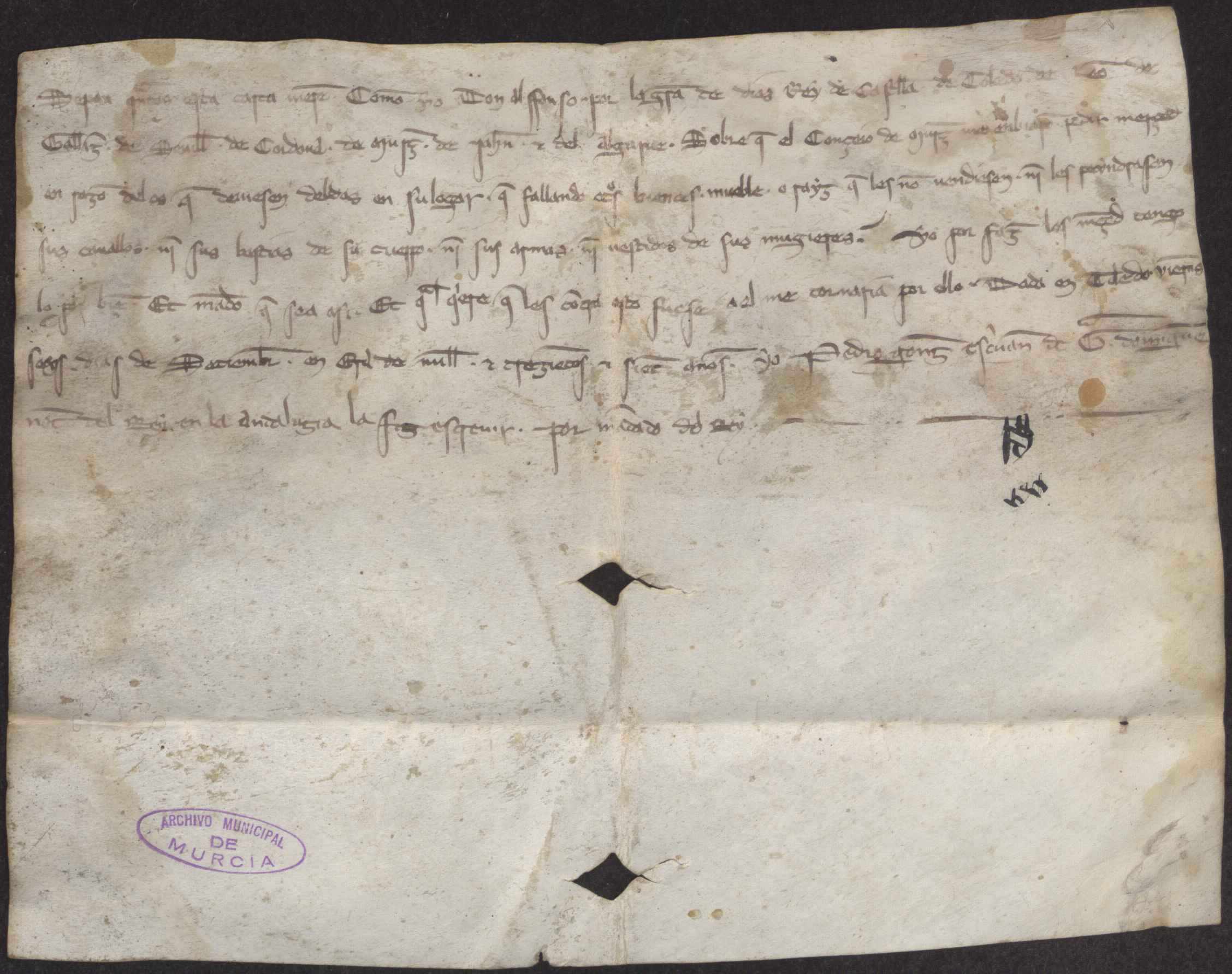 Alfonso X ordena que a los vecinos de la ciudad de Murcia que tuvieran bienes raíces no les fueran embargados sus caballos, bestias, armas ni vestidos por deuda.