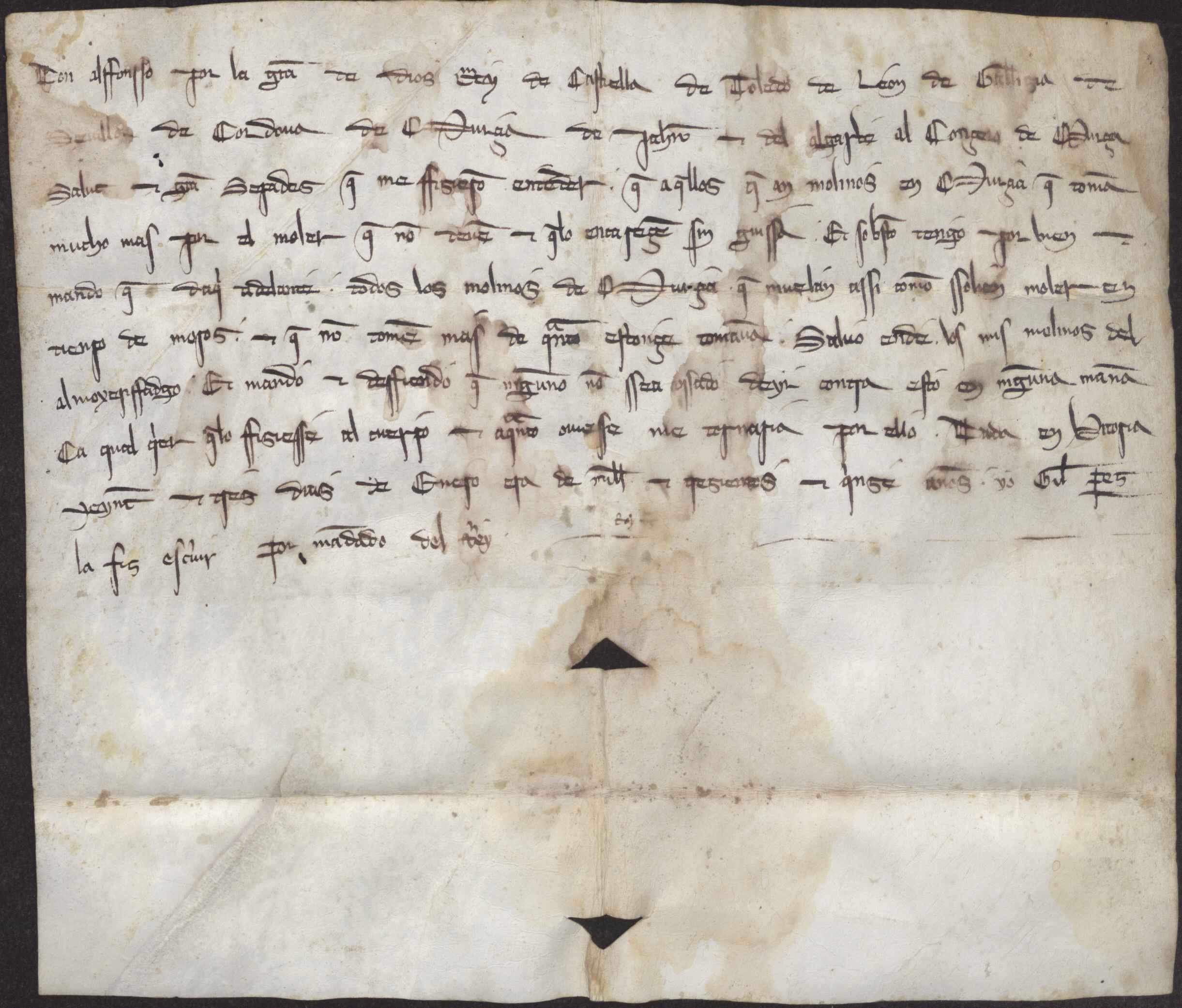 Carta abierta de Alfonso X al concejo de Murcia, sobre la molienda.